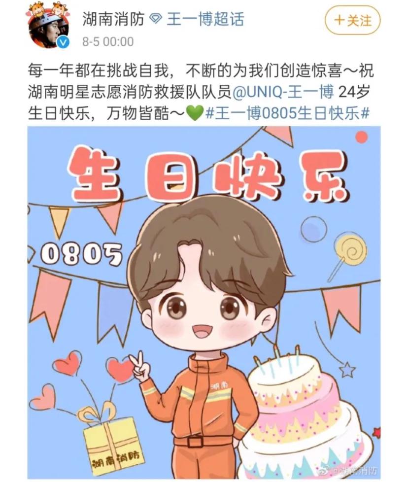 腾讯视频、腾讯综艺、腾讯微视、淘票票、湖南消防等一众媒体发文祝福,更有王一博代言的品牌如安踏、红米、勇闯天涯、高露洁纷纷送上祝福。