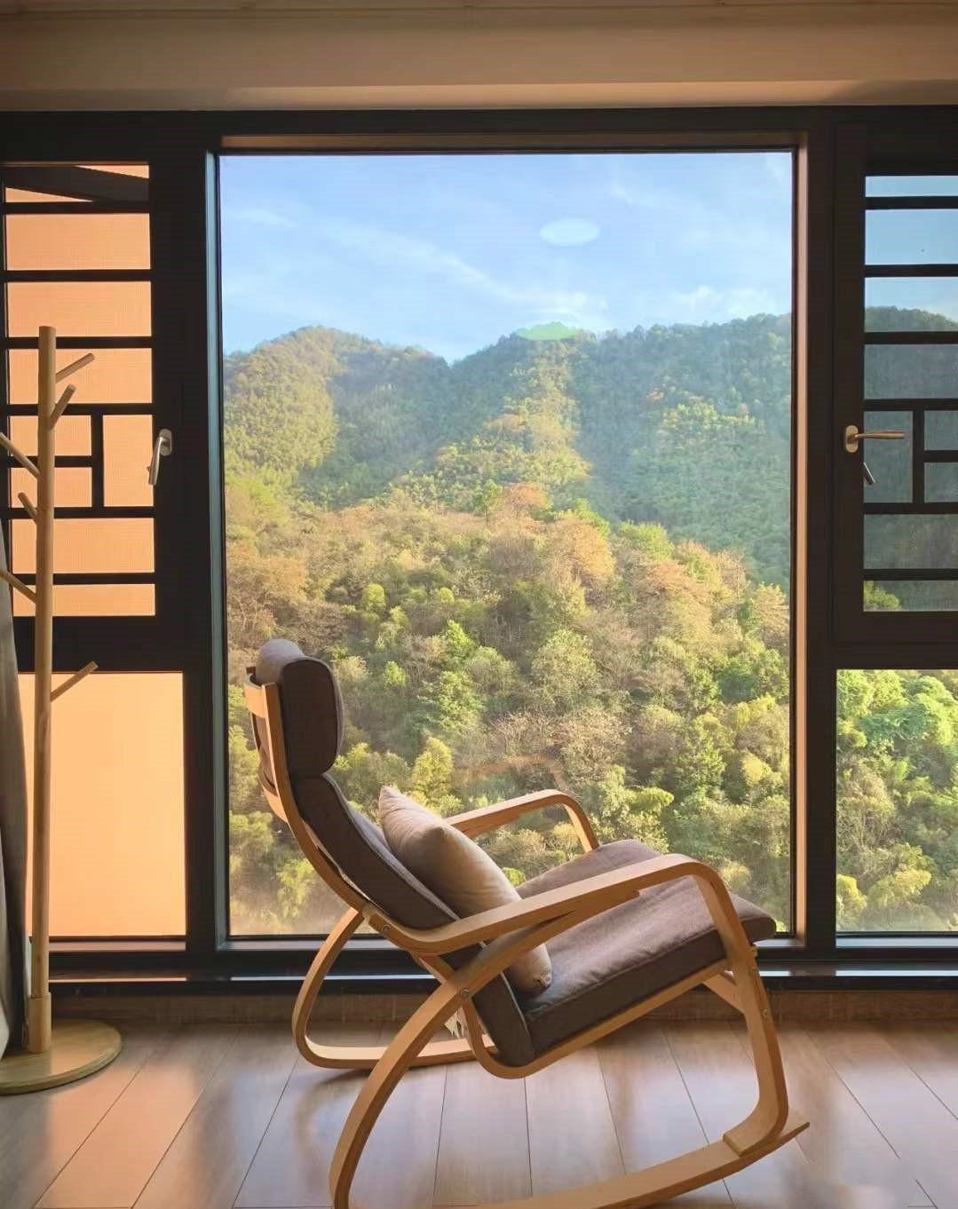 窗内是舒适的生活空间,窗外是绵延的山景,仿佛置身于山景别墅一般,有一种“归隐山林”的既视感,这不就是古代文人墨客深藏功与名,过的闲云野鹤的日子吗?闲暇时坐在窗台上,放眼向窗外望去,感受大自然扑面而来的美,让人感到心旷神怡,这样的家简直就是理想的住所,没想到却被同事吐槽湿气重,会得风湿,真的很无语,我要是有个这样的家,就算让我天天不出门都可以。