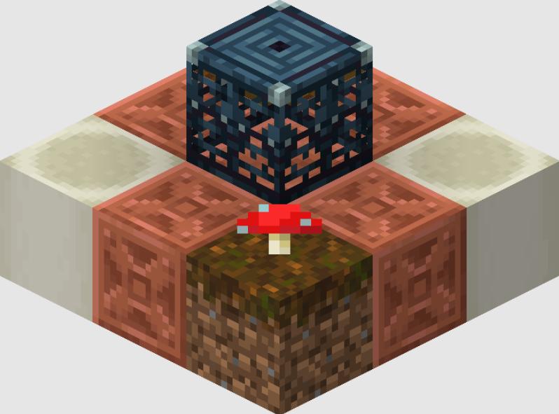 Minecraft的试炼刷怪笼与普通刷怪笼不同,试炼刷怪笼都是自带一个底座的。以旋风人为例,旋风人试炼刷怪笼的底座是一个3*3的基座,包含了铜块/雕纹铜块组成的十字,四个角的方块则是“雕纹凝灰岩”。
