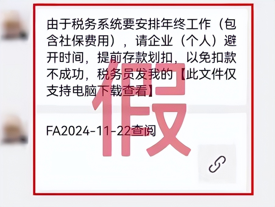 11月22日,在公司的员工突然收到部门的财务发来的消息,说有税务问题要处理,还要安排年终工作,给每个员工都发了一段文字和一个链接。