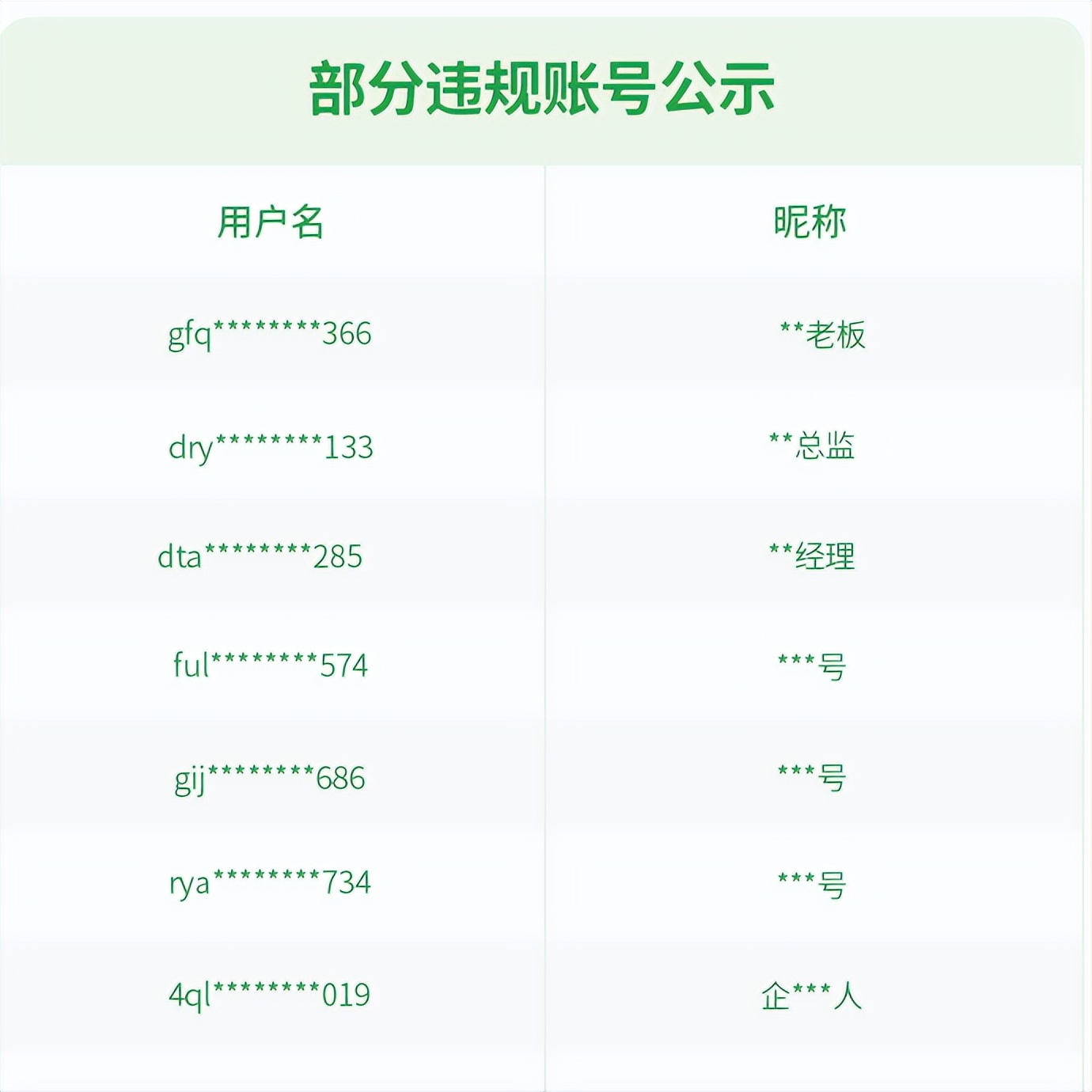 违规账号