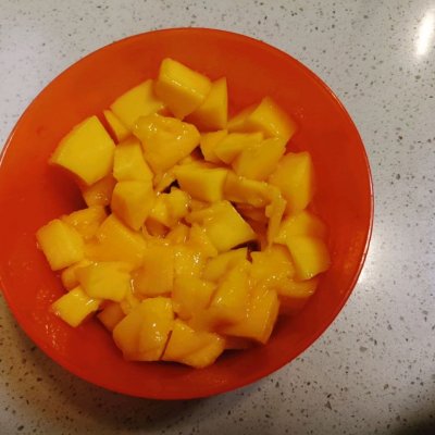 2、芒果去皮、去核、切丁,称出150g芒果肉。