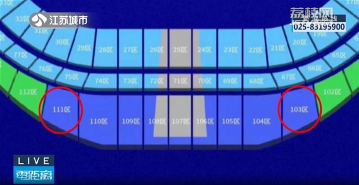 歌迷们发现大麦网上的座位示意图变了,原先处于绿色区域、售价380元的103区和111区,已经变成了售价580元的蓝色(来源:荔枝网)