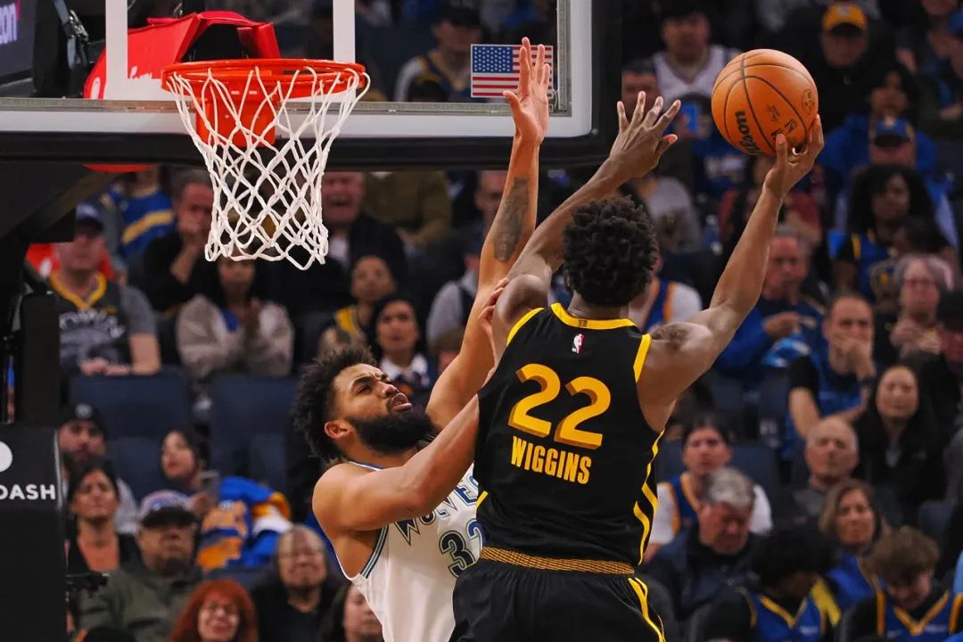 维金斯拿了球以后不敢投篮,这让勇士的空间感大受影响。尽管他用空切和持球攻筐来弥补,但失去了投篮威胁,攻篮下也会受到更大的收缩防守。