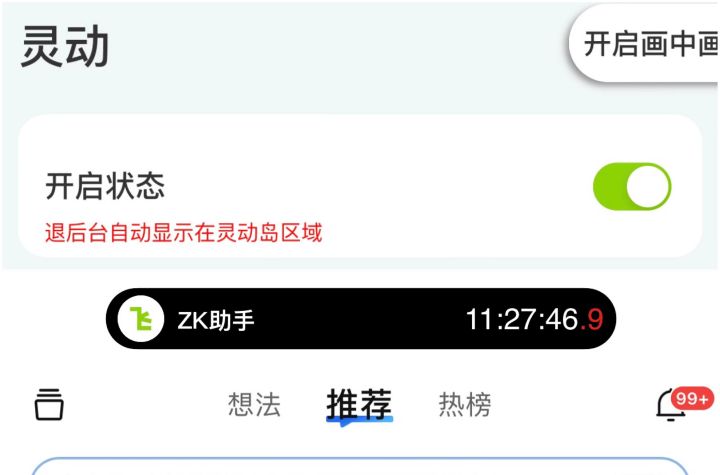 比如我用飞秒抢东西,这个就专门有个灵动开启开关,但是要始终授权定位,否则也不会一直显示。