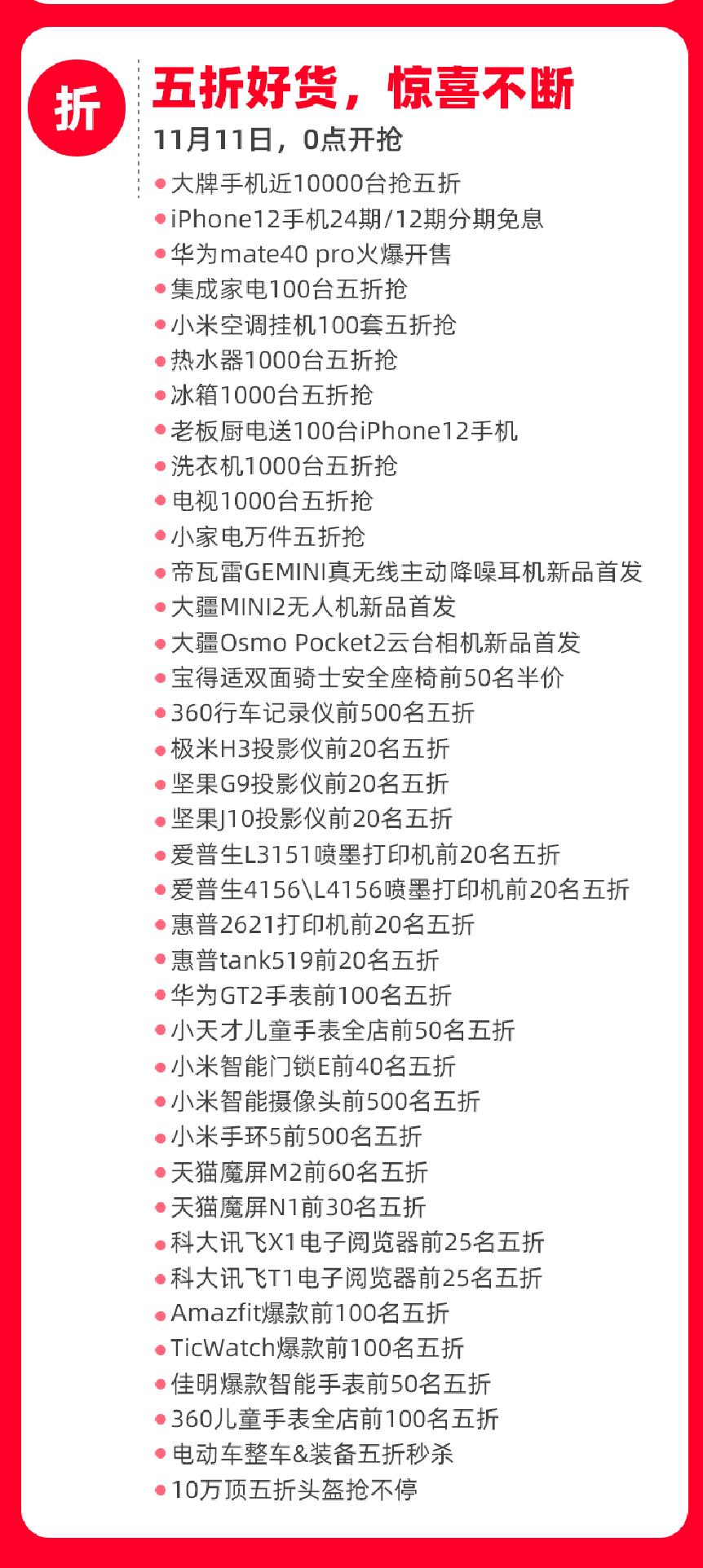 ◆新潮消费电子产品一直是乐于尝鲜的广州消费者们的挚爱,也是双11天猫“五折秒杀、百亿让利”终极狂欢的重头戏。11月11日0点、12点、16点、20点四个时间段限时5折秒杀,其中0点场有华为、荣耀、小米、美的、海尔、方太、奥克斯等5000+大牌爆款参与。小编看了下这些五折好货清单,已经彻底凌乱了,好像全都是想要的……
