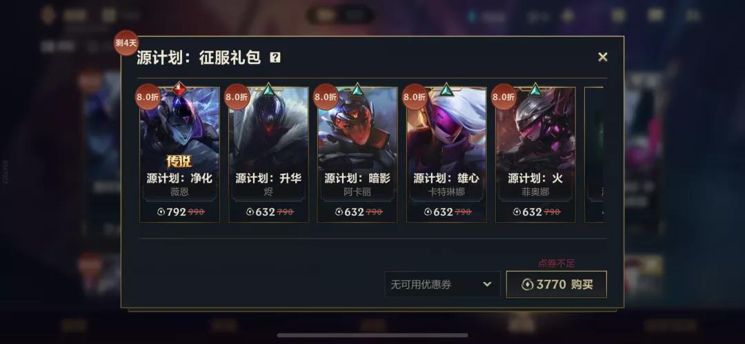 如果按照正常购买皮肤不打折的情况下,购买4款水晶玫瑰皮肤(EZ和光辉是传说)需要356元,按照皮肤礼包8折出售的话需要284元。那么这次抽奖把全部皮肤抽到手需要多少钱呢?