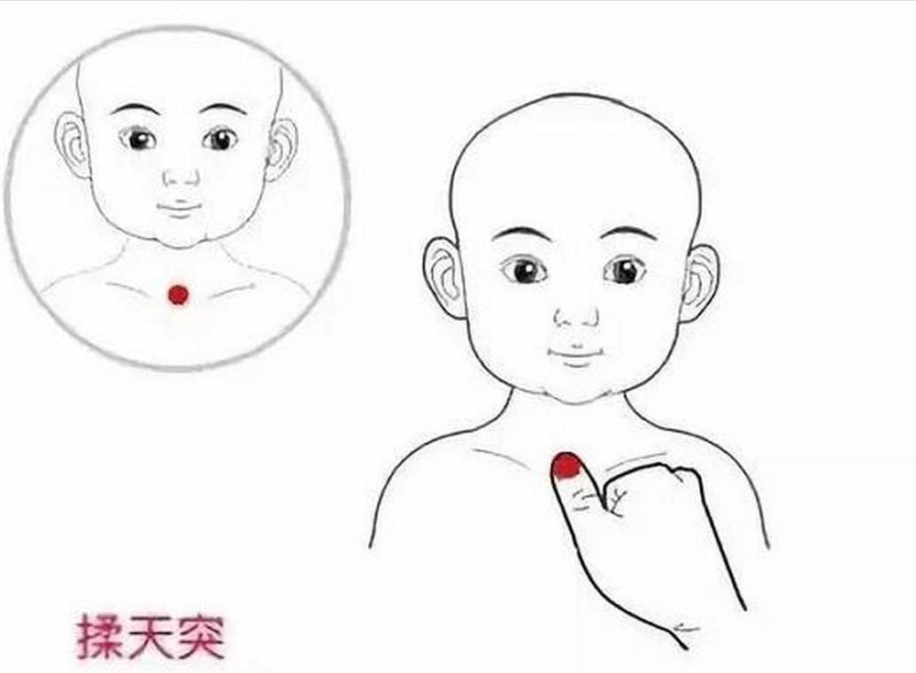 - 手法:家长用拇指或食指,轻轻按住天突穴,力度以孩子感到微微酸胀为宜。
