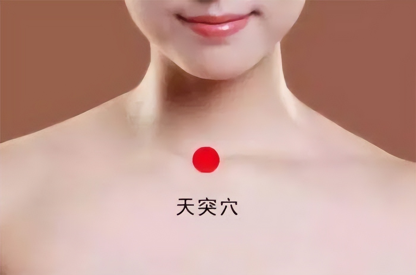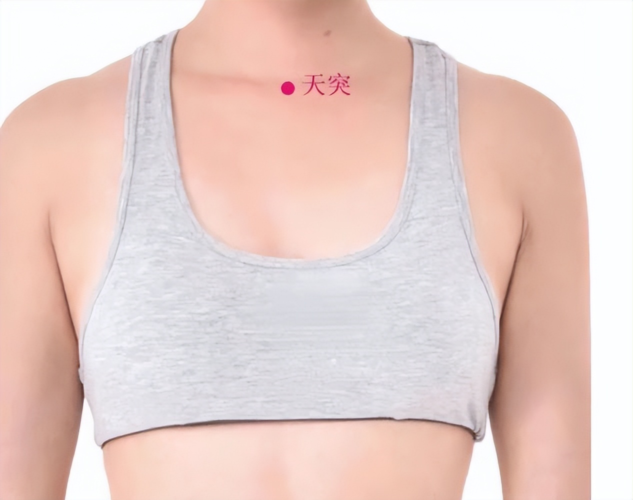 简单来说,天突穴位于颈部正中,锁骨上方的凹陷处。可以用两根手指轻轻摸索,脖子和胸骨交汇处有一个小凹坑,那里就是天突穴。