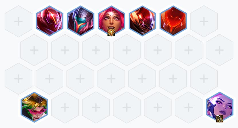 - 前期不拉人口,连败,存钱,打完石头人搜牌,搜到30块就停一下,自动升到5级,卡着30-40金币慢搜三星。找到三星【凯尔】的时候,最好也能找到三星【普朗克】,两星【尼拉】,然后上人口,补上【6决斗大师】即可。