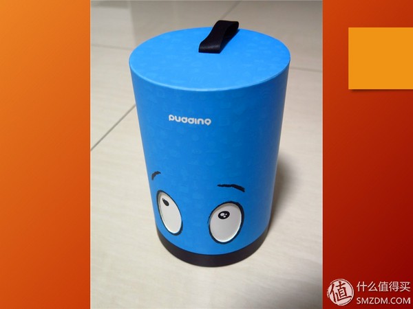 厂家真的设计方面下了功夫,第一眼看到它就让人觉得很萌。整体包装是一个蓝色圆筒纸盒,上面一个大大的emoji,眼睛部位是镂空的。