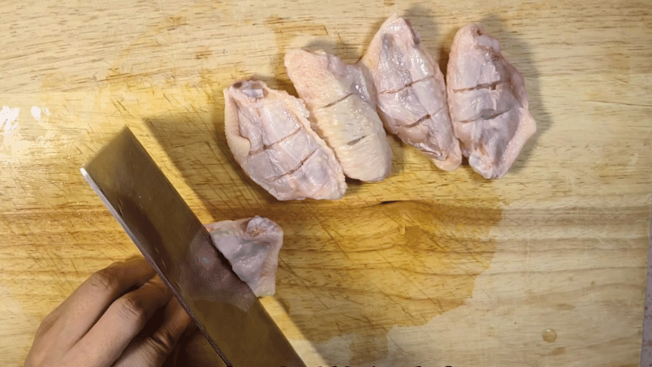1、先把干净又新鲜的鸡中翅,两面改刀,这样可以更好地入味。
