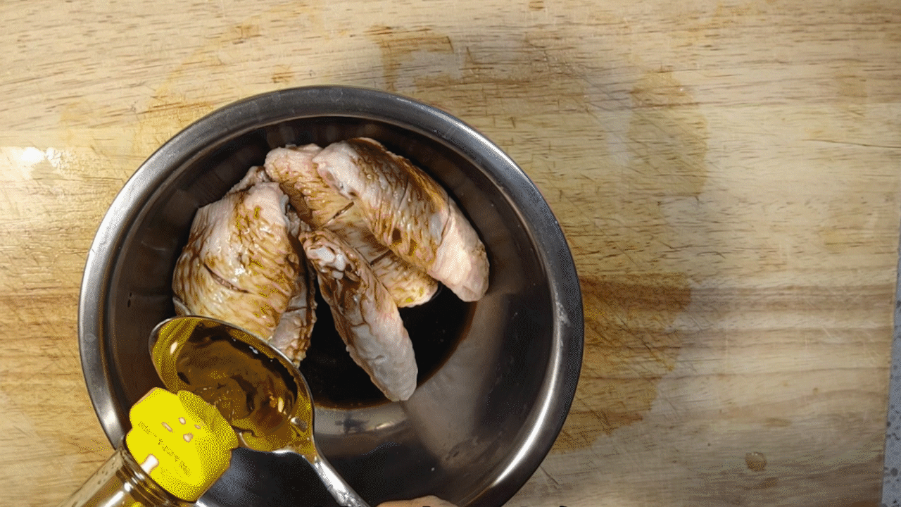 ▶鸡翅的腌制上,按照我上面讲的方法,腌制的时间要长一些,不着急吃的朋友们,建议腌制上半天的时间。这样入味会更好。
