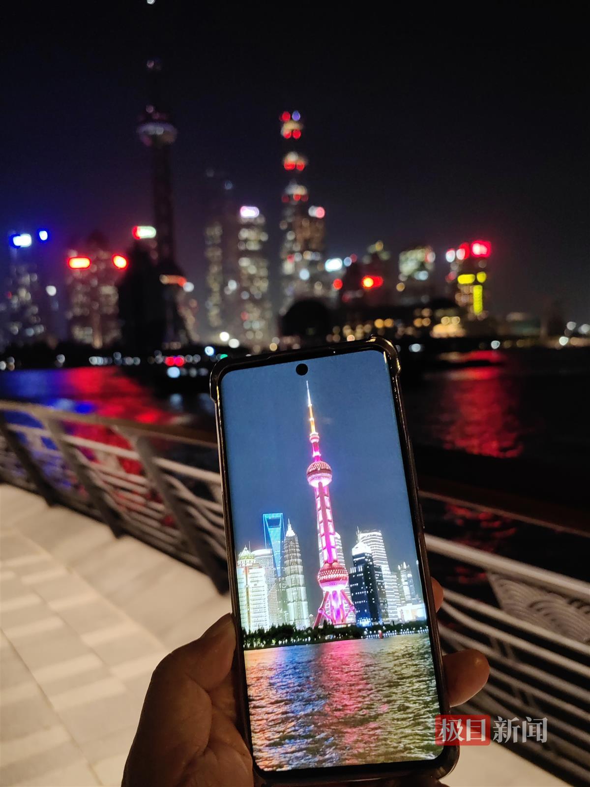 不少前来游玩的市民告诉极目新闻记者,这是第一次看到“没有开灯”的外滩。市民曹先生和妻子经常在晚上到北外滩附近散步。22日晚,他们发现黄浦江边亲水平台比往常要暗,陆家嘴的“东方明珠”等建筑也没有亮灯,他们从旁人处得知了上海的这一举措。