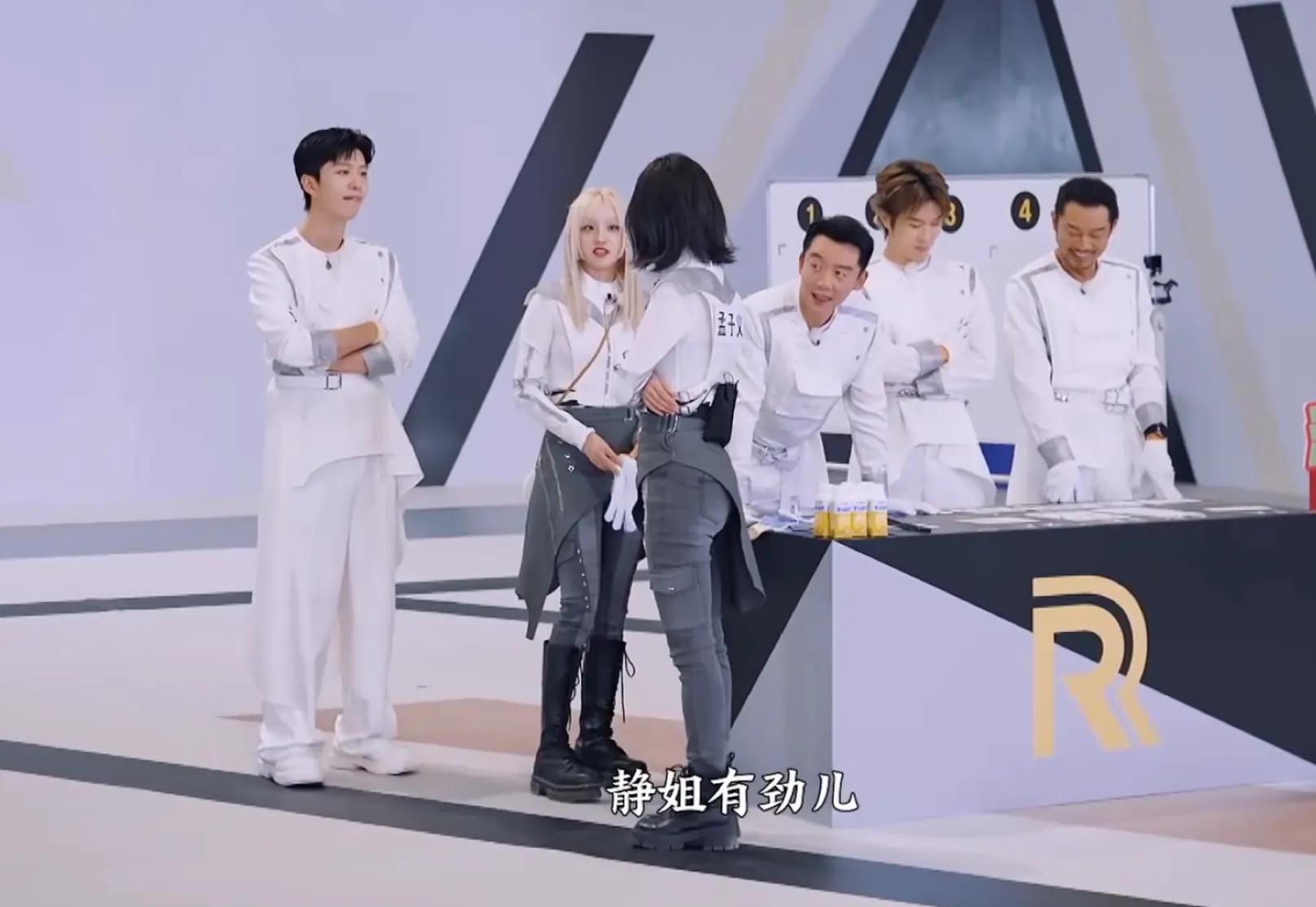 孟子义和宁静一同进行1V1的拔河比赛,结果被宁静一秒轻松拉走。