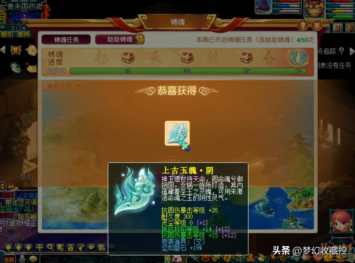 (1)解锁命魂之玉系统后,少侠可通过在长安城(129,193)女娲神使处接取“铸魂任务”来获得“上古玉魄”。