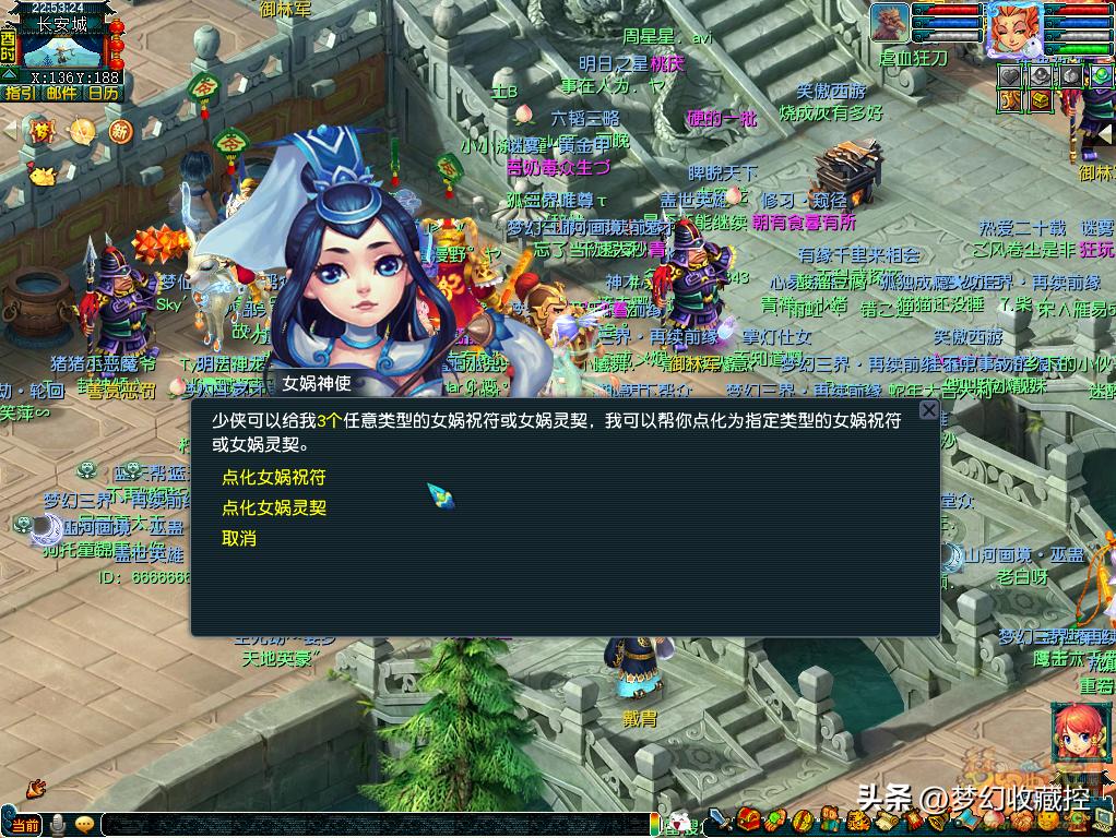 长安城(129,193)女娲神使处可将任意3个“女娲祝符”点化为一个指定种类的“女娲祝符”。