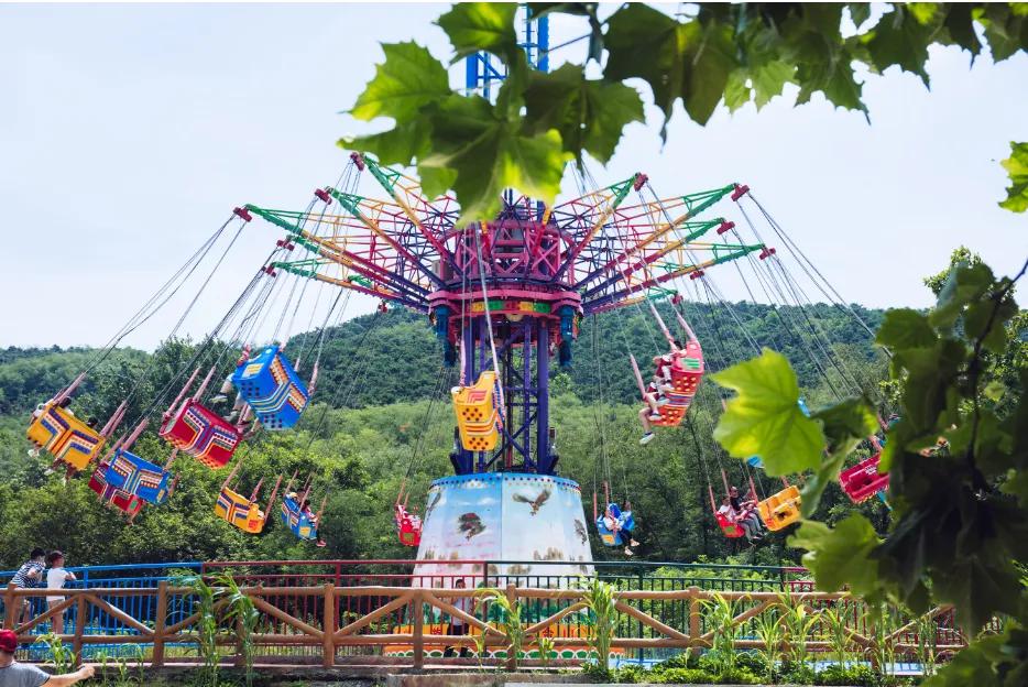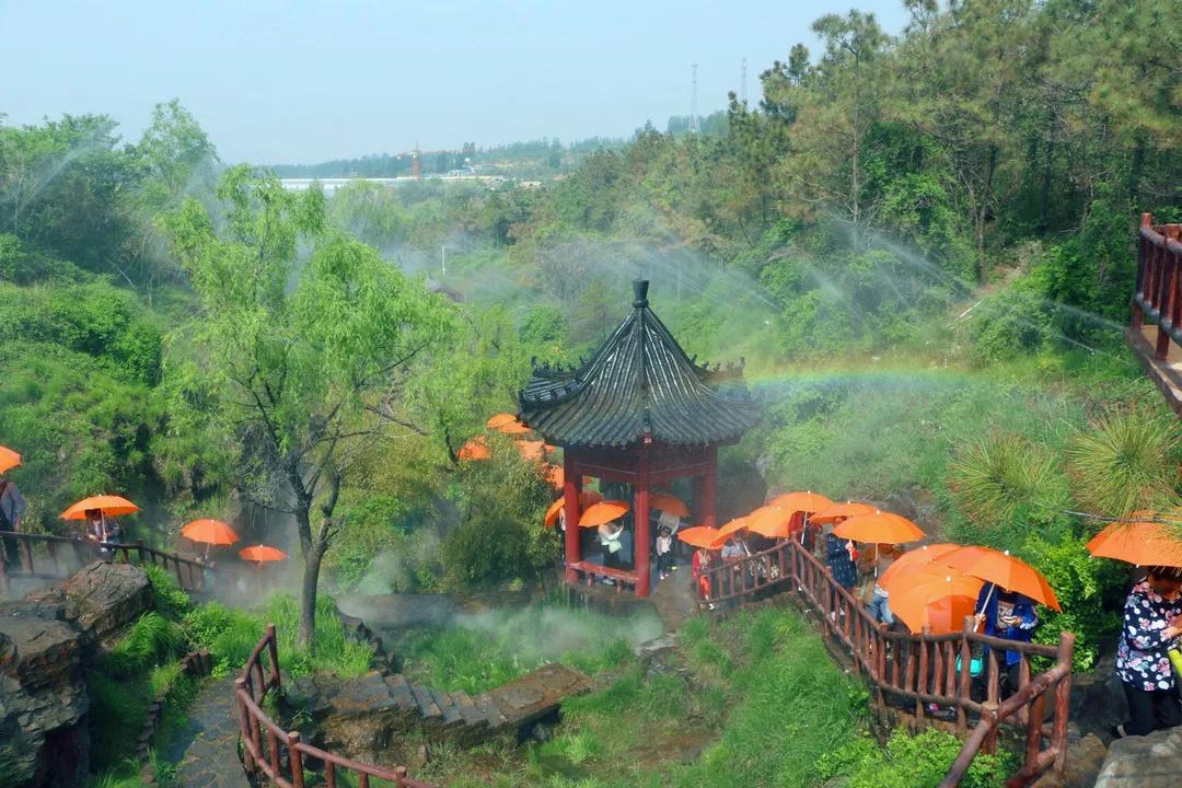 绿树繁荫,彩虹翩跹,夏日的雪山彩虹谷·沂蒙彩虹小镇花红柳绿与声声鸣叫相映成趣,融合自然环境集娱乐、休闲、度假、演艺于一体,景色醉人,谭溪相连,清爽袭人。