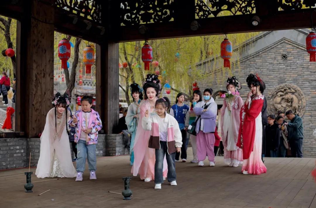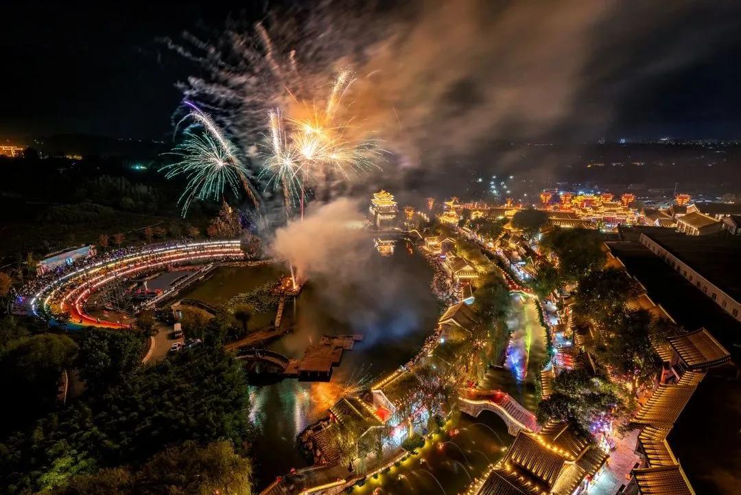 彩虹小镇入夜后,华灯初上,被金色的灯光装点得富丽堂皇。漫步古色古香的街道,领略沂蒙古街的独特风情,从小镇牌楼的“开城迎宾”到国潮街的“凤鸣芳菲”,美轮美奂,一步一演艺。
