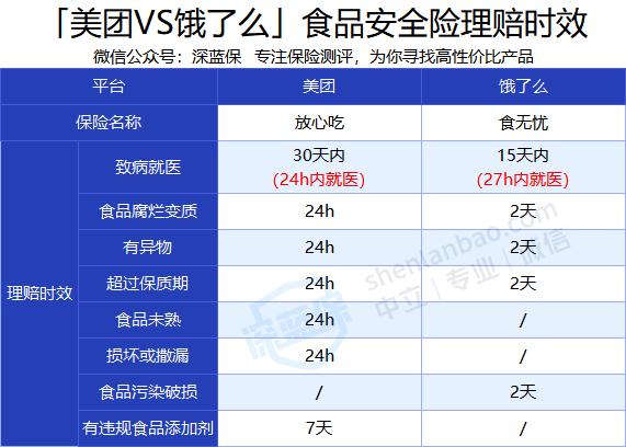 如果发现食品没熟、撒漏,美团的“放心吃”也能赔,保障责任相对更全面。
