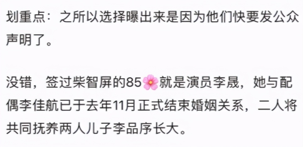 但随后却又有新的爆料人发帖称确实是李晟,并补充了更多细节。据称李晟和李佳航早在去年11月就离婚了,并决定会共同抚养儿子,最近就会发布公开的离婚声明。