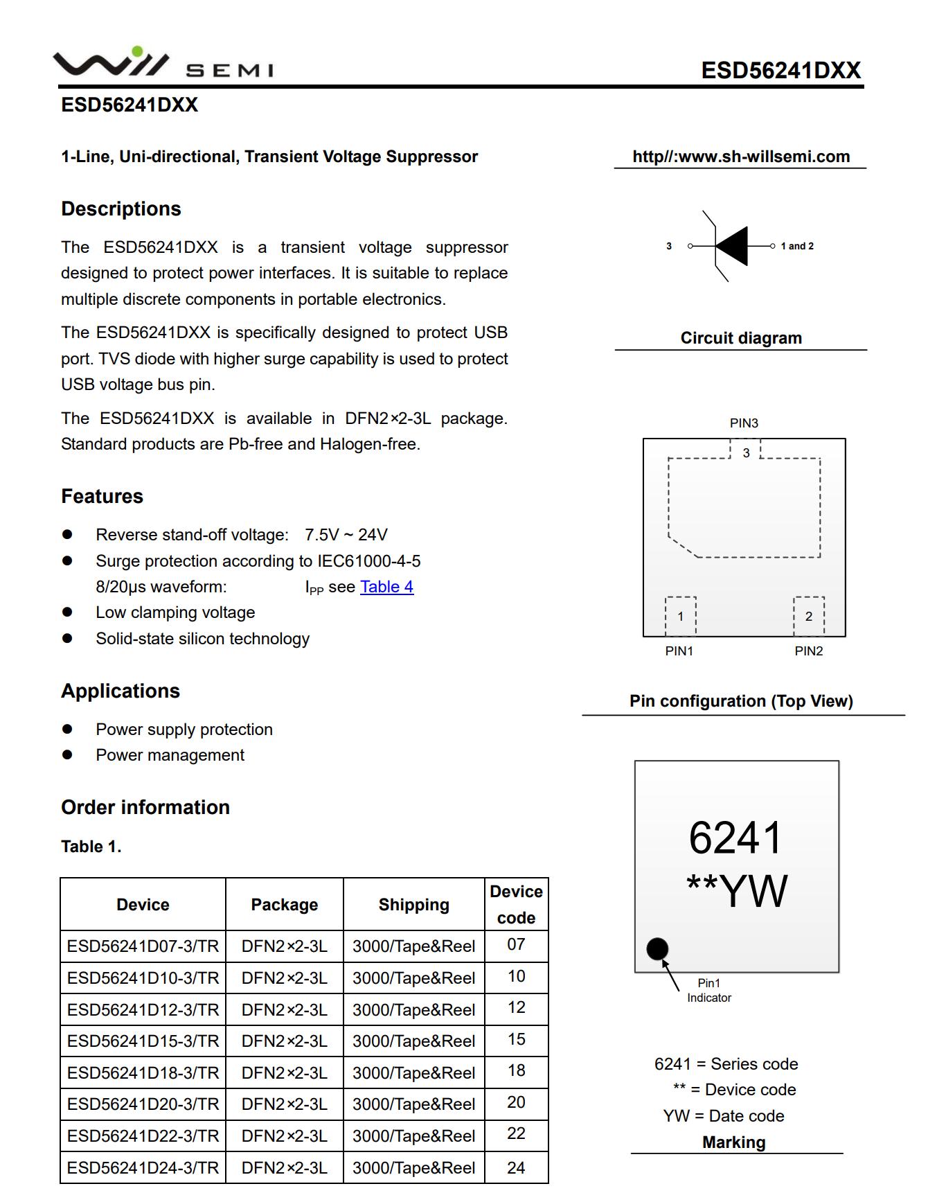 WillSemi韦尔半导体ESD56241DXX详细资料图。