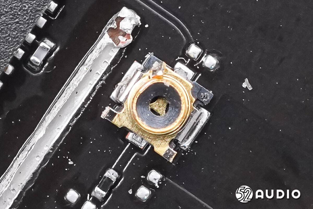 镭雕S7B2 1482的MEMS麦克风特写,用于语音、视频通话功能拾音。