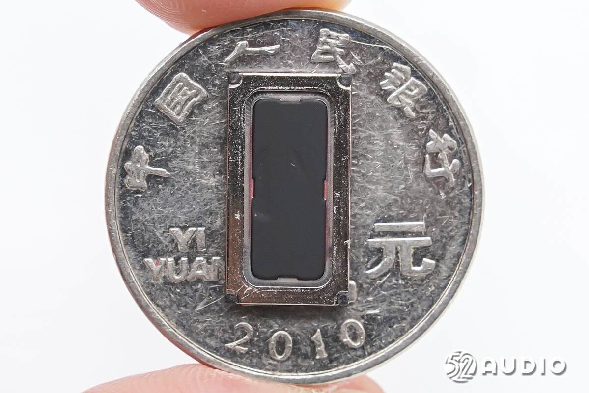 扬声器与一元硬币大小对比。