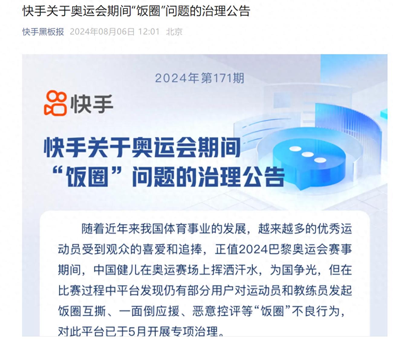 近期,多个互联网平台发布了针对奥运会期间“饭圈”违规内容的治理公告。