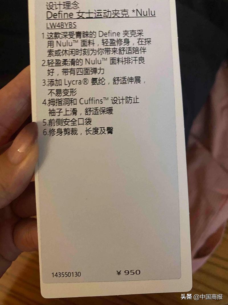 标价950元售价1080元,lululemon涉嫌价格欺诈