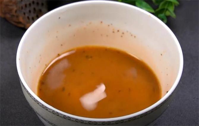 6.下面调一个料汁,碗里加点黑胡椒粉,两勺生抽,两勺清水,一勺淀粉,用勺子搅匀化开。