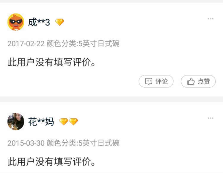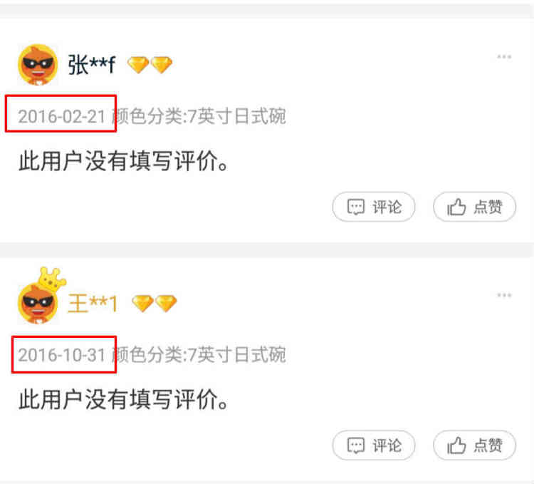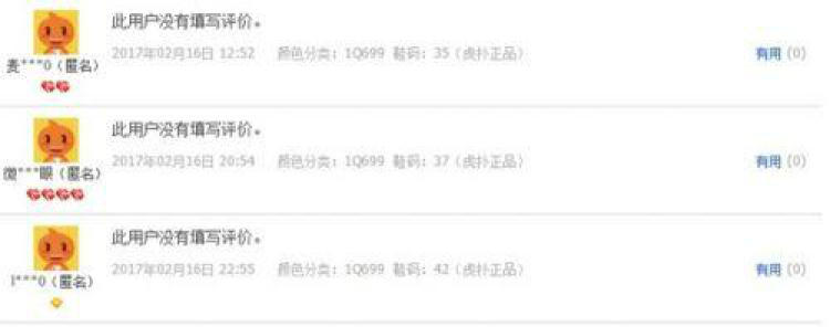 其次,“此用户没有填写评价”出现时间有很早的,比如去年2月、10月的,并不是今年2月中旬之后才出现的;