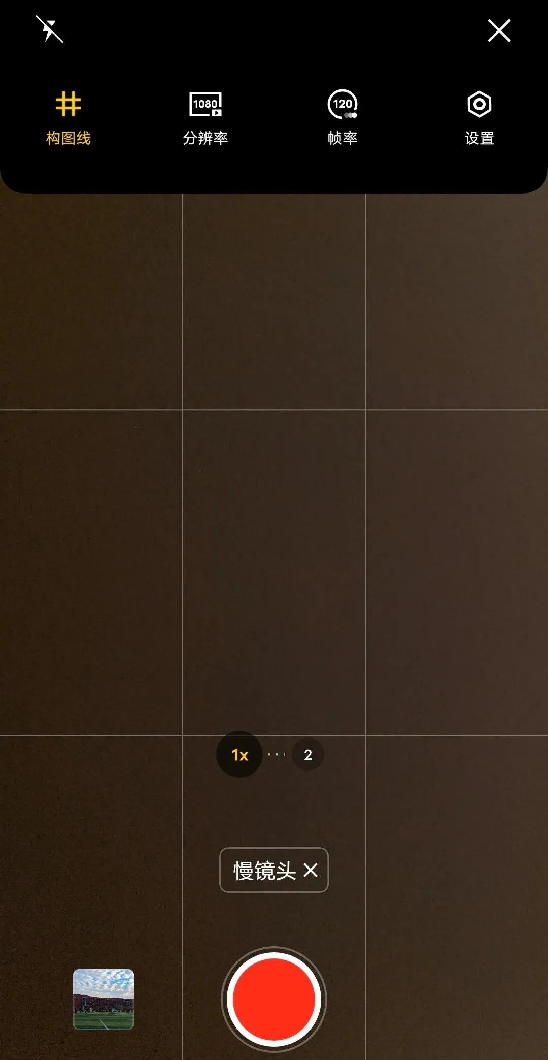 在参数栏的上方有几个镜头的按钮,从左到右分别是:超广角、1X、2X、5X,可以调节拍摄的焦距。