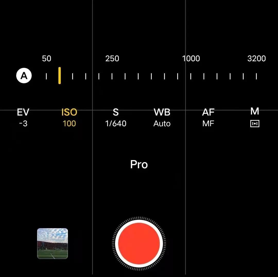 点击 【pro】 进入手动拍摄界面,调整速率,调整iso和快门速度