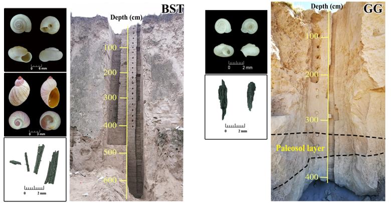 我们对多个地层层位的蜗牛壳和碳屑分别进行了大规模的放射性碳测年,并对各类能指示过去环境特征的理化指标进行了分析,最终对蜗牛种属、生活环境与壳体碳源之间的关系展开了详细探讨。
