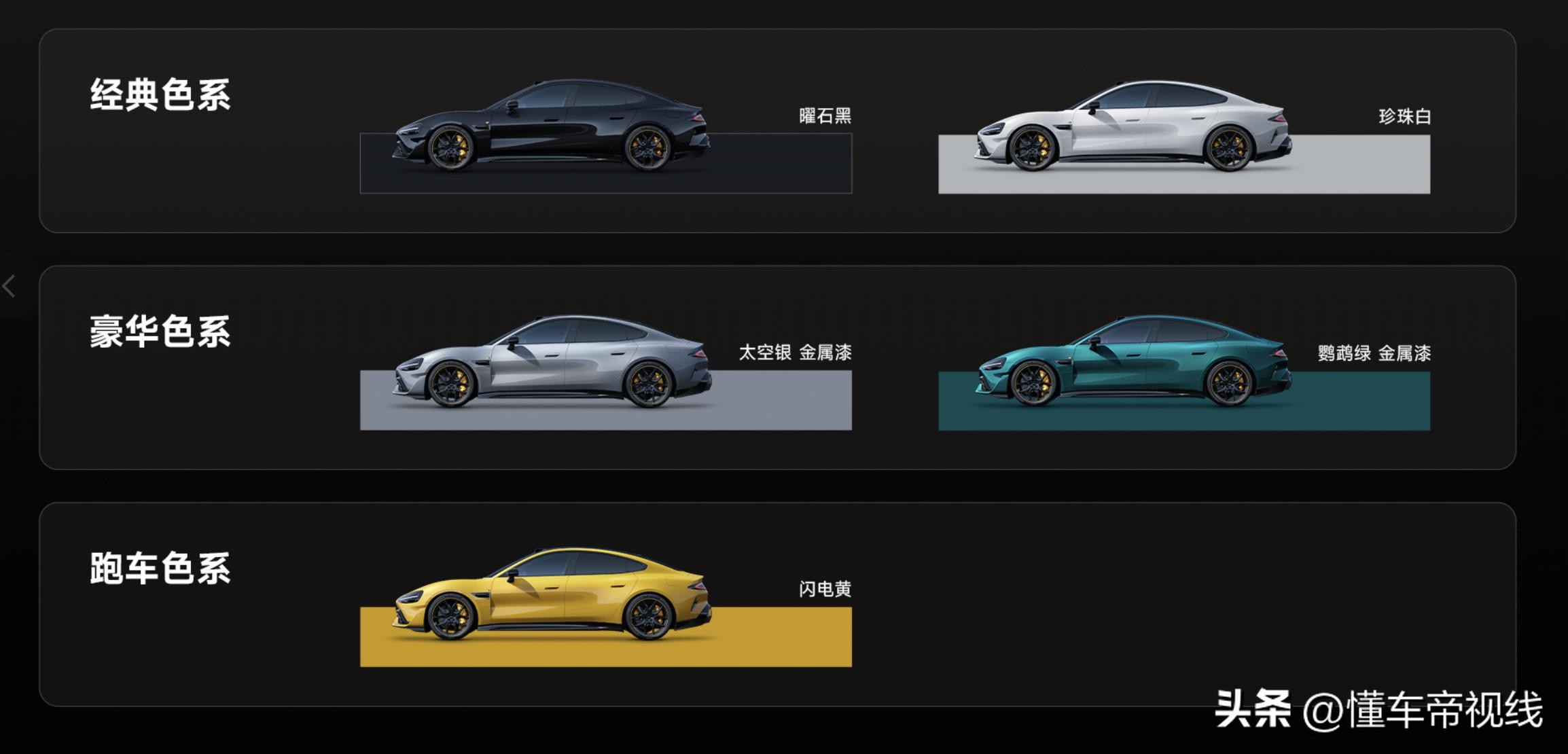 官方信息显示,小米SU7 Ultra共有五种外观配色选择,包括鹦鹉绿、太空银、闪电黄、珍珠白、曜石黑。