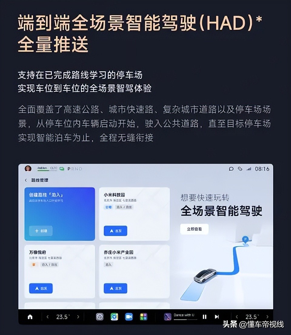 同时,小米SU7 Ultra出厂即搭载小米端到端全场景智能驾驶功能(HAD),将覆盖高速公路、城市快速路、复杂城市道路以及停车场场景的智驾功能。