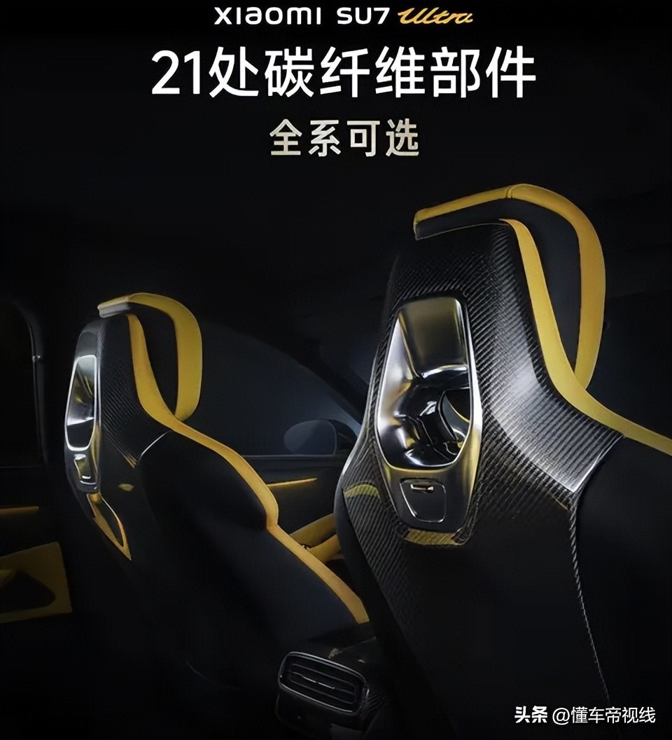 具体来看,小米SU7 Ultra提供有碳纤维运动方向盘,并加入黄色回正标识。同时,该车还配备有碳纤维中控面板、碳纤维座椅背板、碳纤维空调后出风口饰板、碳纤维迎宾踏板、碳纤维门板饰条等,整体营造出较强的运动氛围。据悉,该车全系提供21处碳纤维部件可选。