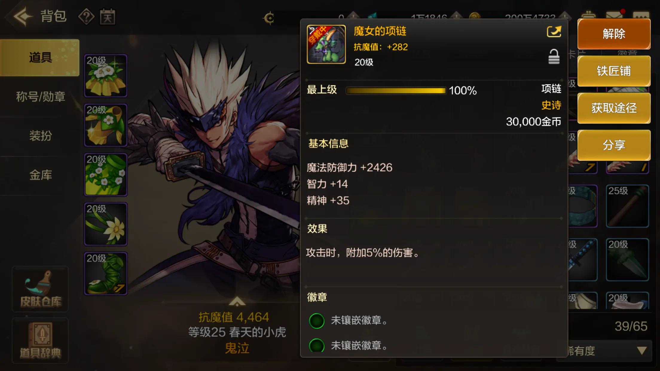 我运气比较差,三天了就出了一个20级魔女项链,纯纯大黑人