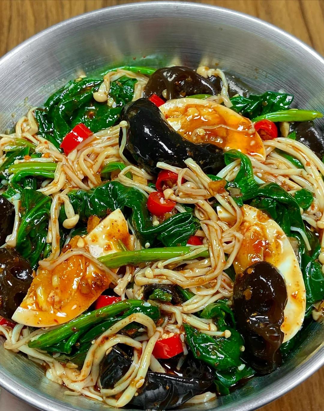 号称“拌鞋底都香”,按“42221”调:4勺生抽+2勺醋+2勺蚝油+2勺香油+1勺糖,最后加蒜末、小米椒、白芝麻增香。
