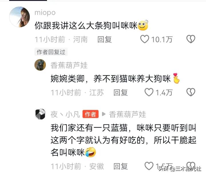 同时咪咪的主人也在网上发了致谢视频,有人表示震惊“你跟我讲这么大条狗叫咪咪?”对此,咪咪的主人是这样解释的 “我们家还有一只蓝猫,咪咪只要听到叫这两个字就认为有好吃的,所以干脆起名叫咪咪。”虽然听起来有些随便,但是我觉得这名字倒是特别符合这只找不到主人就只会蹲在路边嗷嗷大哭的大狗狗的。