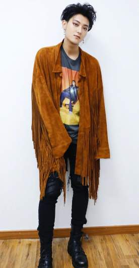 4月4日上海总决赛录制媒体群访, 黄子韬卡其色流苏外套搭配黑色破洞裤出席《这就是街舞》,这次的星星耳坠非常的抢眼!