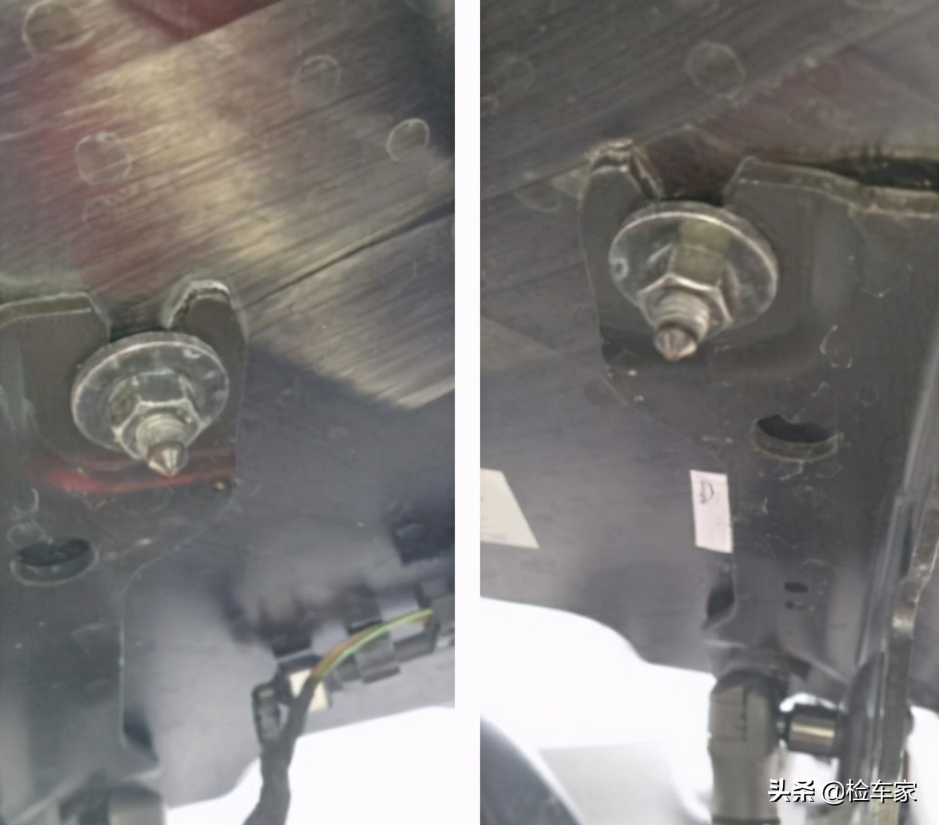 咱们再对车辆的后左右纵梁以及防撞梁进行检测,后防撞梁的螺丝都没有拆卸过也没有碰撞后修复的痕迹,那么左右纵梁自然也不会有什么问题。