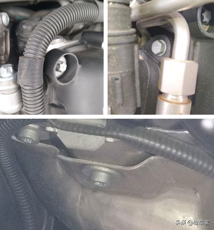接着就对这个发动机进行检测,先看看气门室盖有没有渗油和拆卸,显然此处是没有问题的,接着就是进气歧管,和排气歧管,固定螺丝都没有拆卸的痕迹。