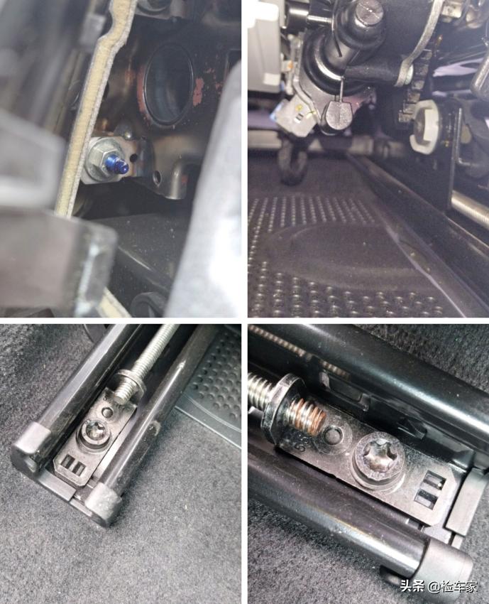 咱们继续对车辆的水泡火烧进行排查,我们可以看到仪表台的固定螺丝和座椅下面的海绵及座椅螺丝和滑轨金属,有没有生锈及水渍,拆卸等。目前对这些位置检测下来均无异常。