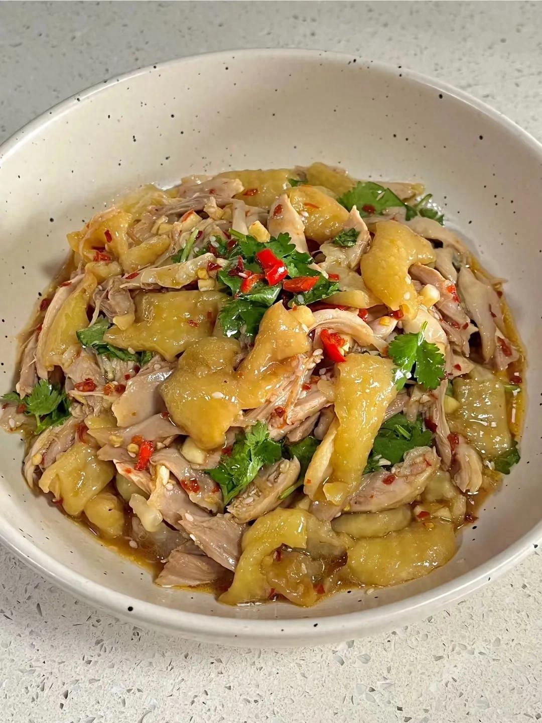 这时候香味直往鼻子里钻,酸辣的柠檬香、浓郁的姜蒜香和鲜嫩鸡肉香混一起,馋虫全勾出来了。装盘后,鸡肉浸在酱汁里,色泽鲜亮,入口先是柠檬清爽,接着鸡肉的鲜嫩、酸辣的刺激在舌尖爆开,每口都超有层次,下饭拌面两不误,保准全家都爱吃,你也快试试!