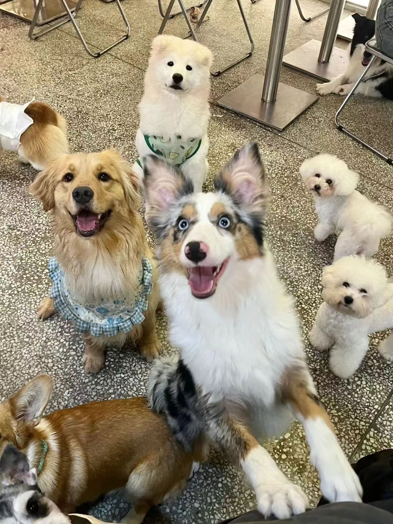 “呼呼”上班的咖啡店在一栋220平方米左右的双层房子内,屋里每天有15-20只不同品种的小狗“轮班”陪伴顾客,当中有店老板救助的流浪狗,也有像“呼呼”这样前来“打工”的宠物狗。