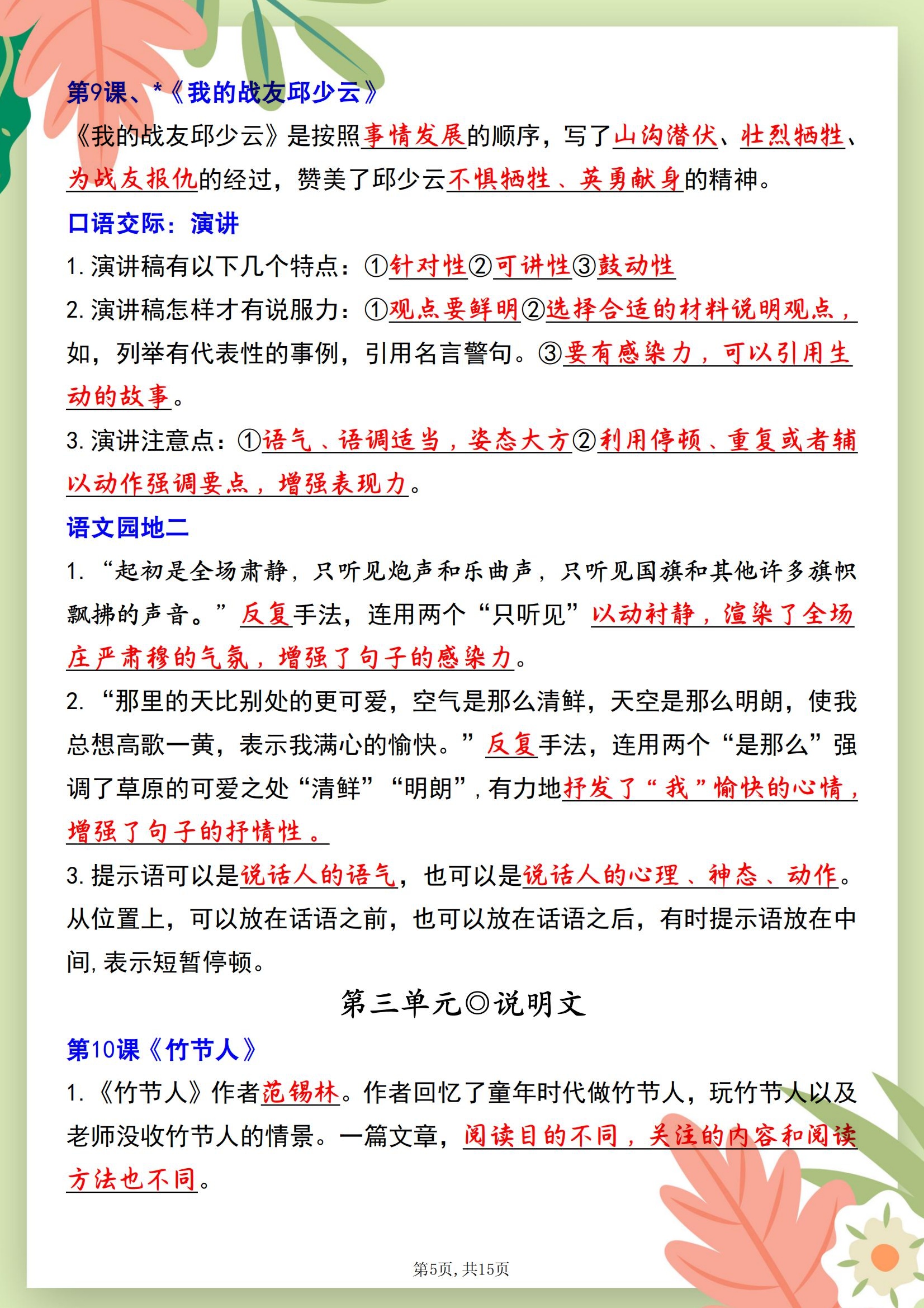 班主任划重点:六年级上册语文每课课文内容考点梳理,谁背谁拿分