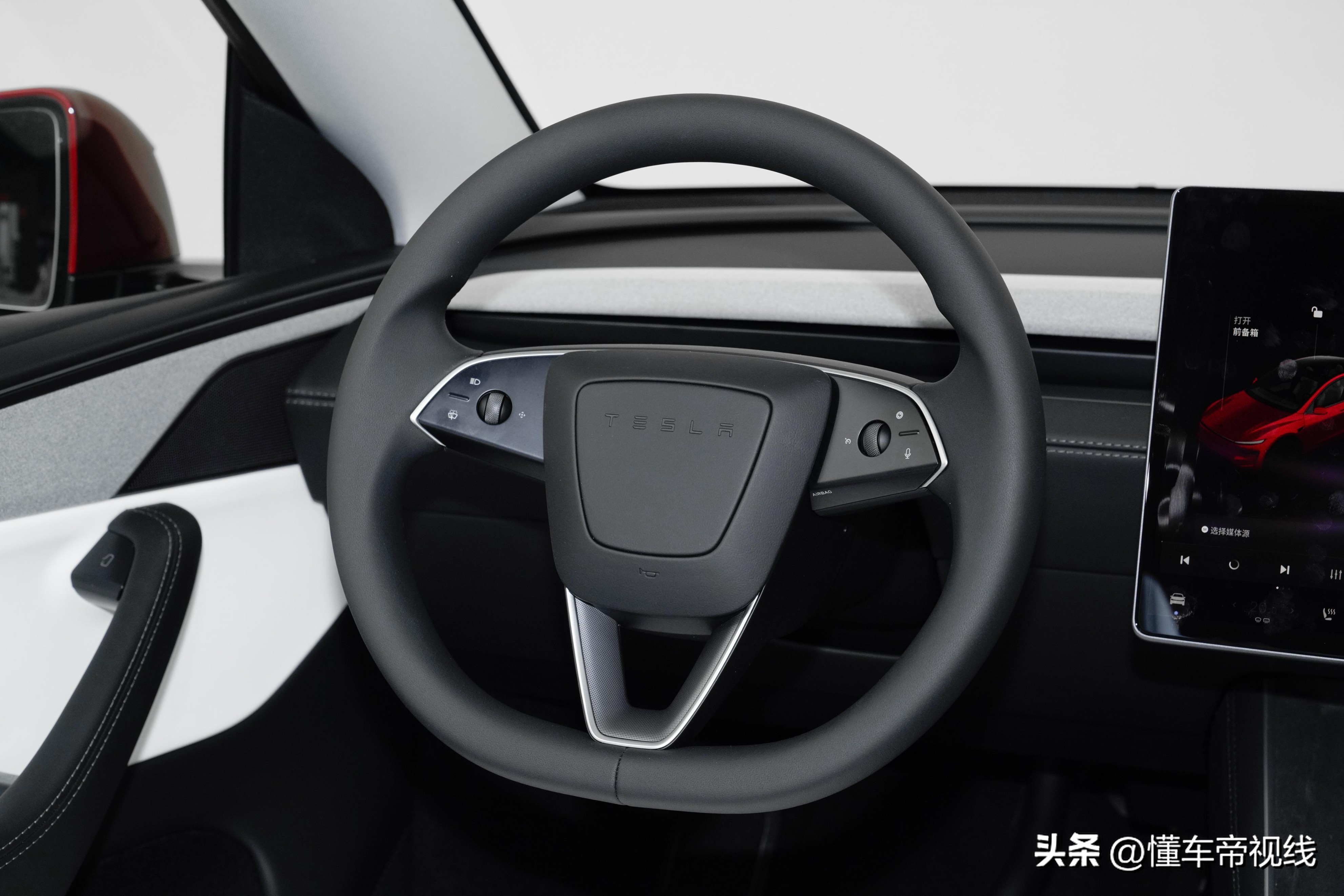 内饰方面,新款Model Y基本沿用了新款Model 3的布局,与新款Model 3所不同的是,新款Model Y保留了转向拨杆,并对方向盘的多功能按键进行重新布局。不过,美国市场推出的新款Model Y长续航全轮驱动首发版车内中控饰板将采用黑色麂皮材质包覆,国内新款Model Y该位置则为织物材质包覆。