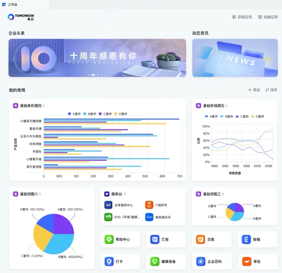 除了大屏汇总展示,仪表盘中的图表还支持添加至工作台“我的常用”中,避免在不同的多维表格中反复翻找,节约用户查阅时间,随时追踪数据。